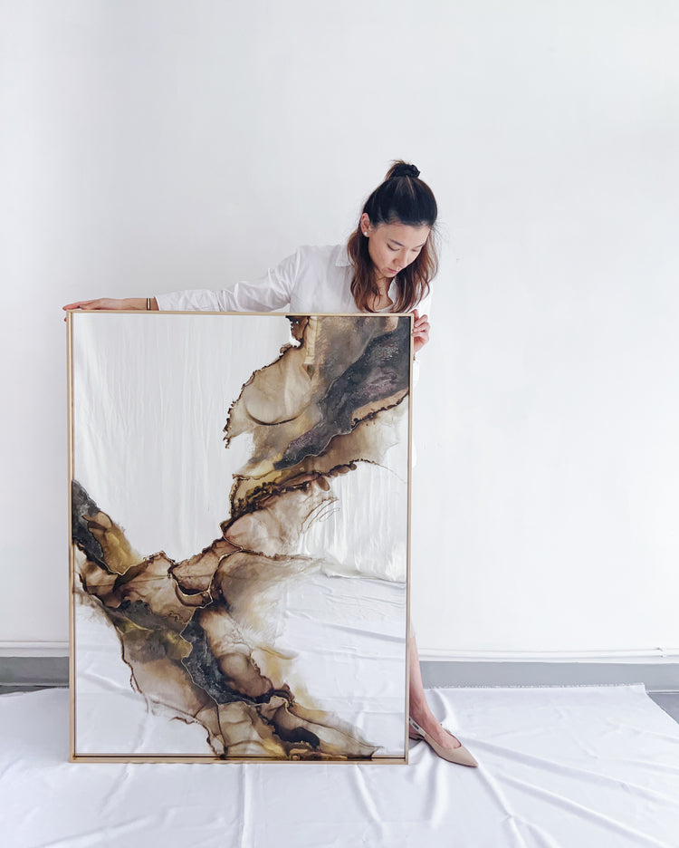 This ongoing series of artworks centers around navigating motherhood. In late 2022, I became a mother to a little boy and this active decision to start a family brought about a lot of changes in my life. Through each piece of artwork, I’m documenting my mental landscape or certain significant moments in this beautiful yet exhilarating roller coaster ride. Using mirrors as my canvas is an ode to the constant process of self reflection of my identity. Each piece is like freezing a moment in time and my way of sharing this intimate journey with the world.